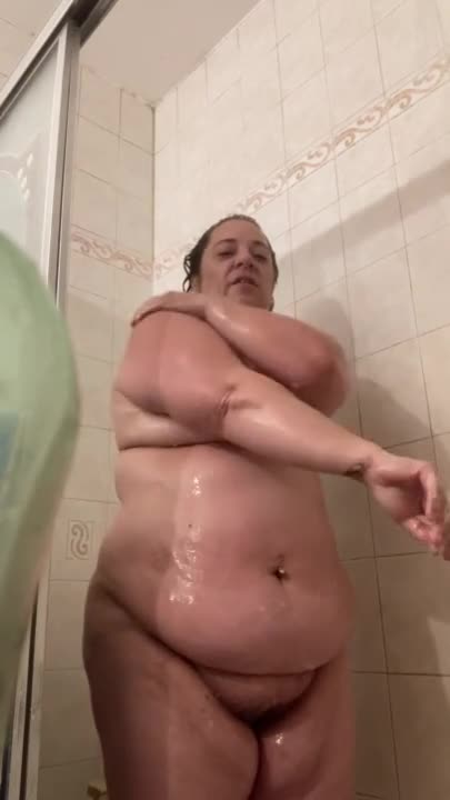 Пышка с большим мясистым лобком снимает процесс помывки в душе своего пышного тела с демонстрацией своих прелестей.