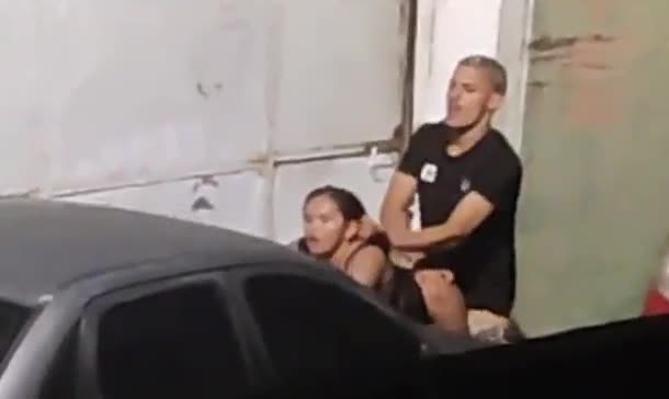 Вечером чувак жестко трахнул страстную красотку на багажнике машины под лампой на всеобщее обозрение.