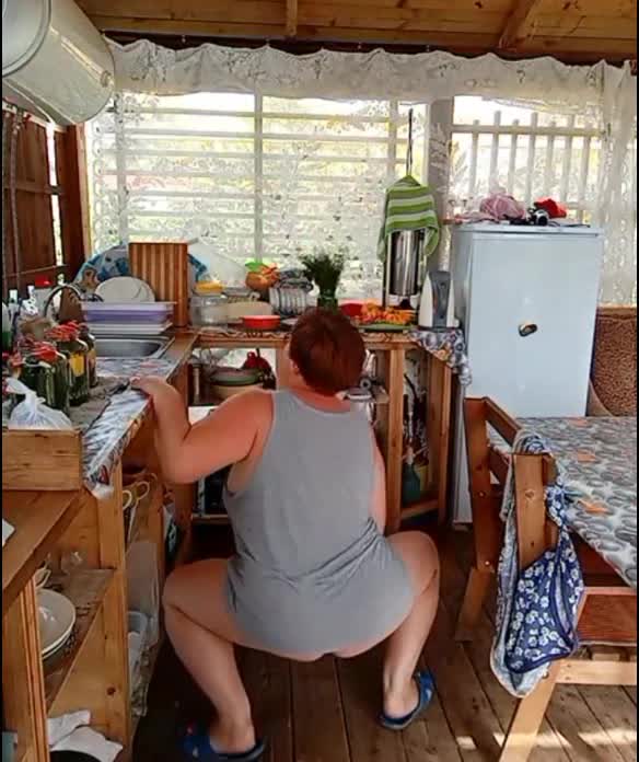 Красивая женщина очень сексуально двигается под ритмичную музыку пока готовит обед на всю семью.