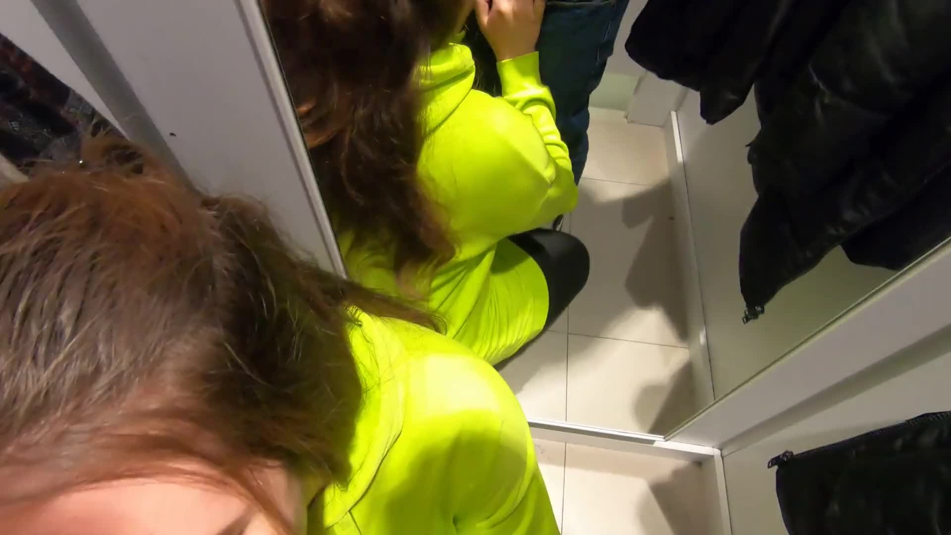 видео в примерочной с девушкой делающей минет