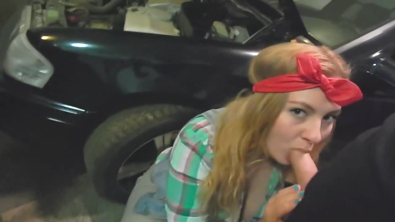 Забежала к мужу в гараж, который уже долго возился с машиной и сделала ему минет.