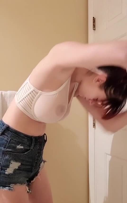 Красавица делает массаж своих грудей