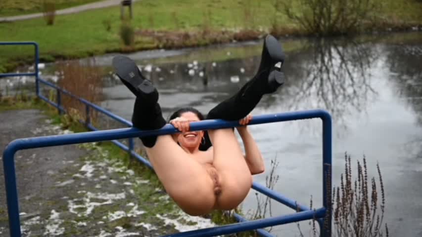 Катюшка опять хулиганит гуляя в парке без трусов.