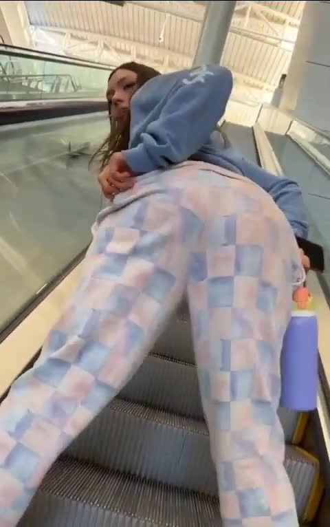 Девочки веселятся в торговом центре на эскалаторе