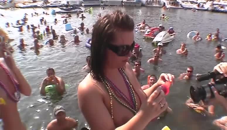 В каком то красивом курортном местечке, девочки устроили шоу для толпы купающихся мужиков
