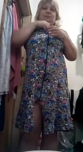 Зрелая пышная дамочка в укромном местечке скинула халатик и для кого-то показала свои прелести.