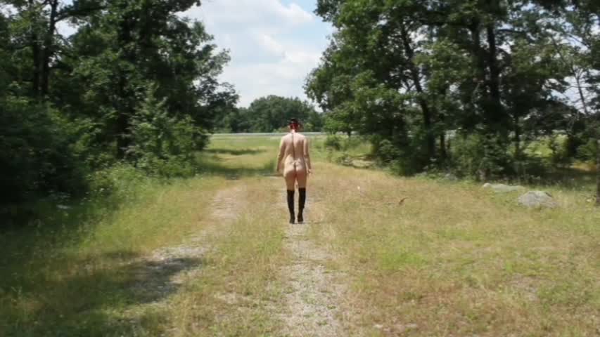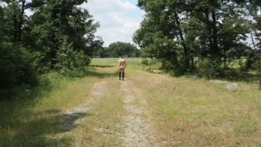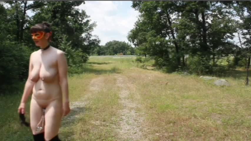 Девушка блондинка с железяками в пипиське развлекается у трассы