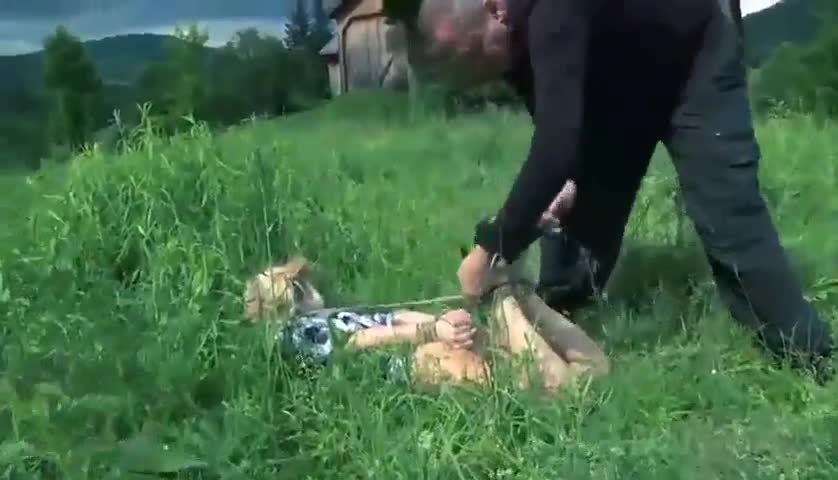 Рабыню вывели подышать свежим воздухом, положили на землю и связали ноги