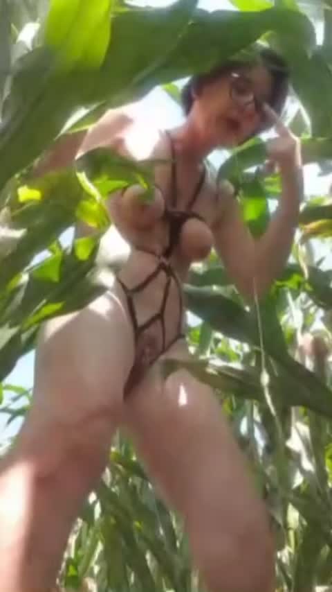 Юлия Сергеевна забрела на кукурузное поле, а початок с попурышками очень её возбудил.