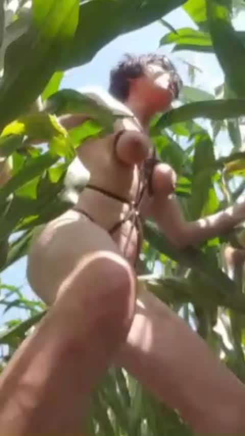 Заводная зрелка. Классно себя кукурузиной трахнула. Надо ей чуть позже на это поле наведаться, когда побольше подрастет