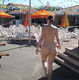 Женщина с очень большой попой и узкими плечами позирует на берегу моря полностью нагая