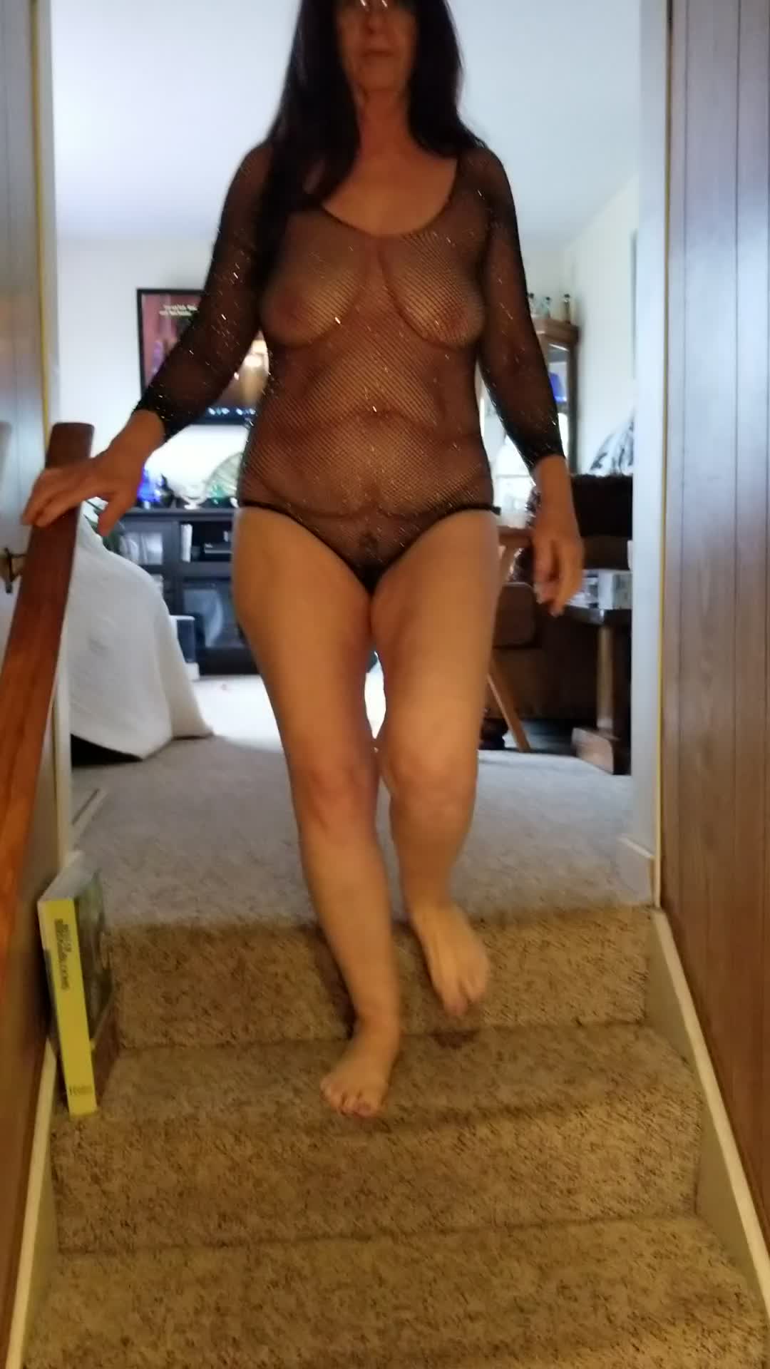 Муж снял на видео зрелую жену, расхаживающую по квартире в сетчатом боди