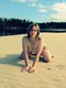 На песочке, у реки демонстрирует свое тело и волосатую промежность.
