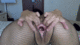 красивая милашка демонстрирует и ласкает сои дырочки через вырез секси колготок в сеточку.