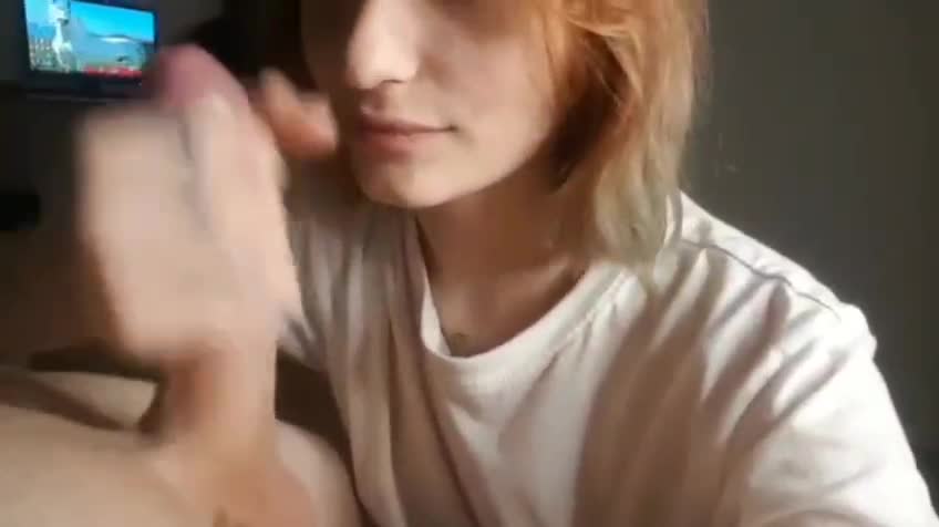Пока она сосёт он смотрит телевизор