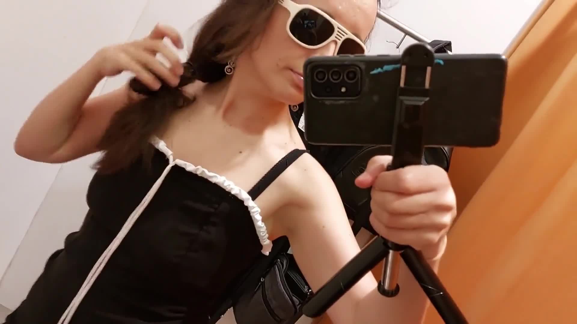 И подбирает наряды для своей мохнатой пизденочки. Интересно что с ней там приключится. А ещё интересно для кого она это снимает