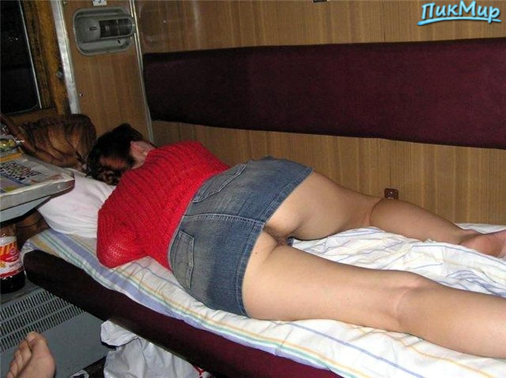 рыжая дамочка уставшая заснула на полке купе в юбке без трусов не думая что засветит все свои прелести