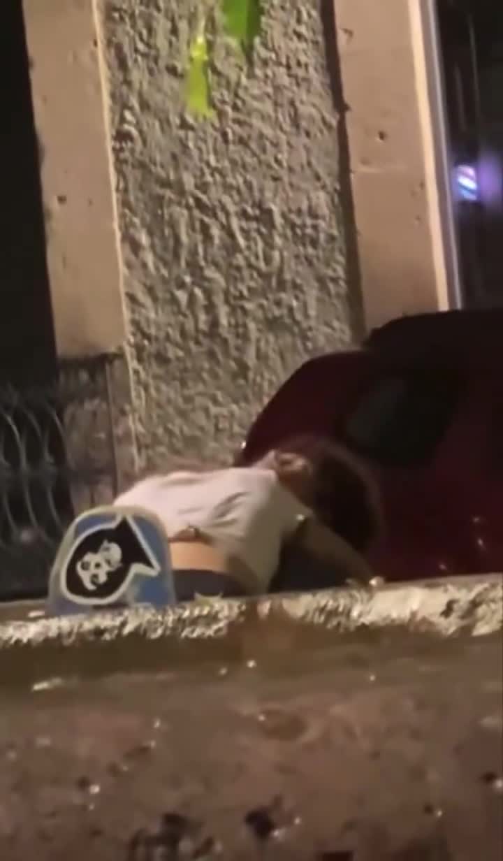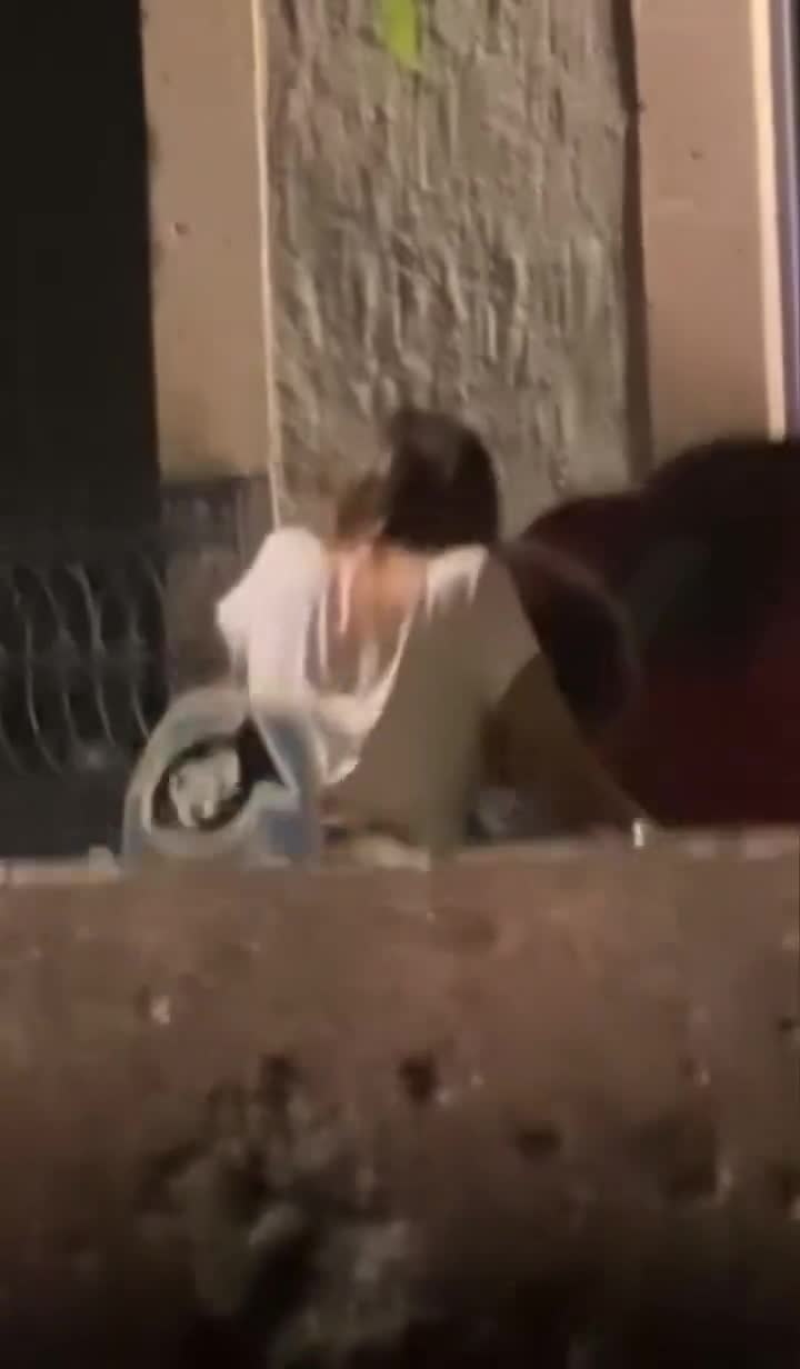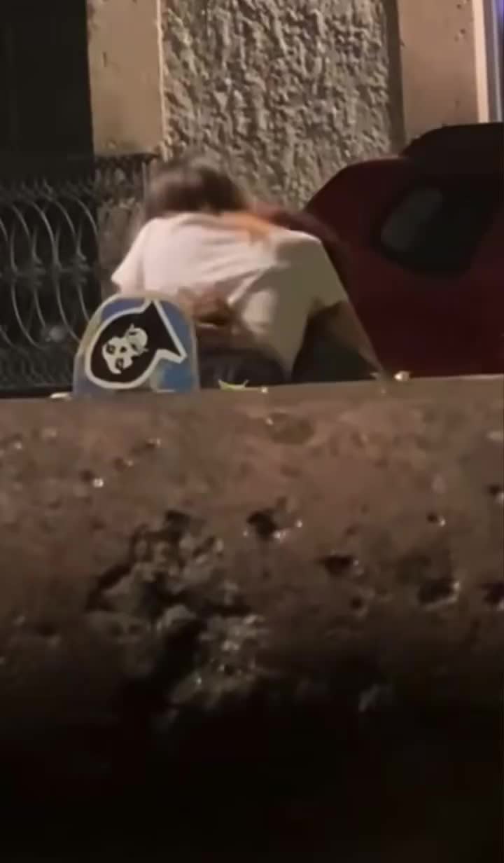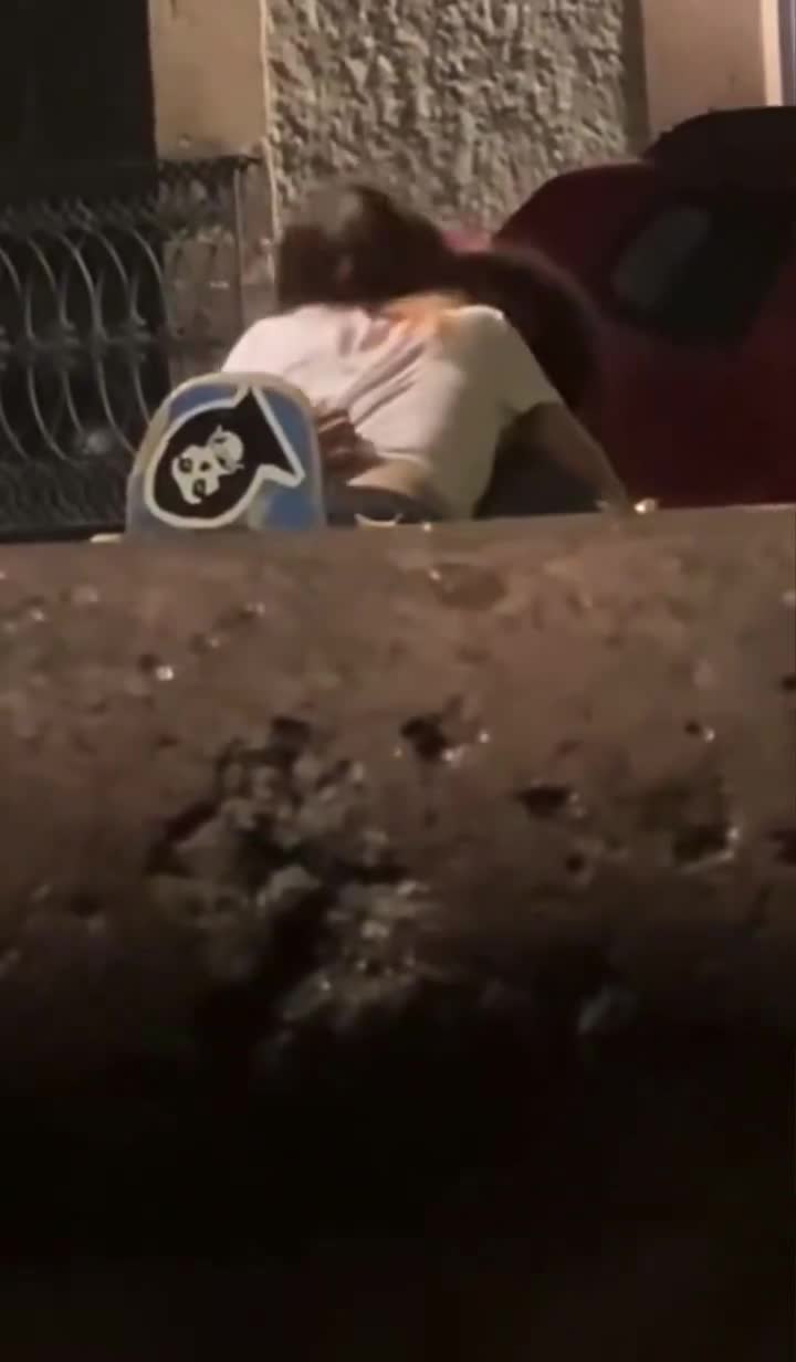 Какие то ребята снимают секс красивой парочки прямо на улице европейского города