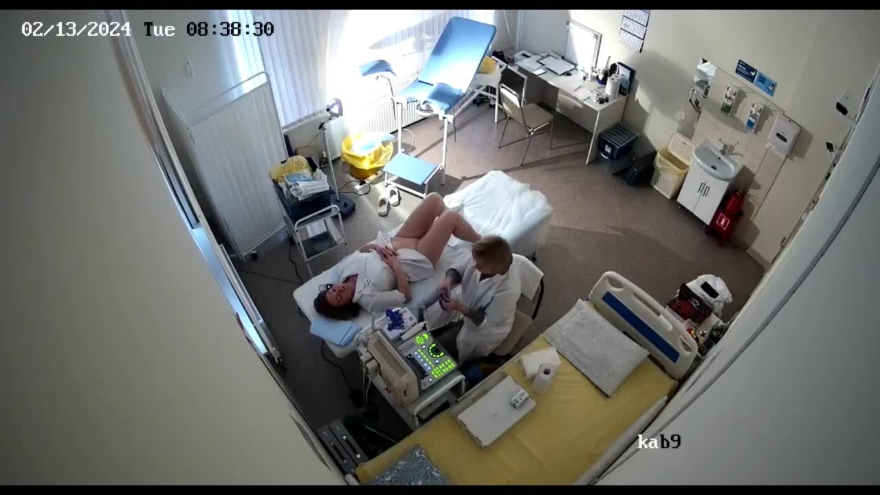 Доктор осматривает молодую медсестру сначала на гинекологическом кресле а затем делает ей вагинальное узи.