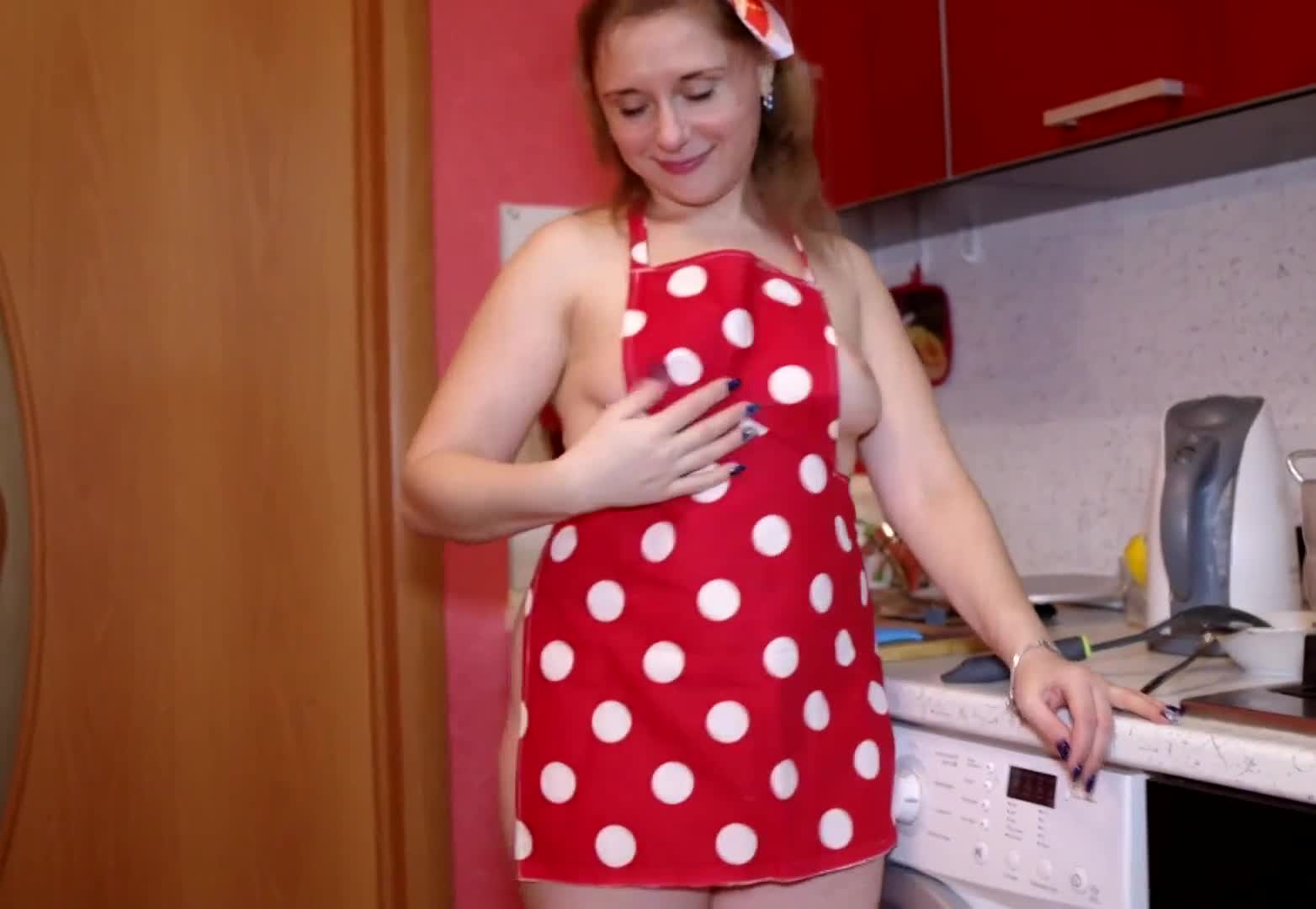 Шаловливая пухленькая бабёнка похозяйничала на кухне и потом пошла отдохнуть на кресле.