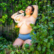 Толстушка Айрис позирует в саду.