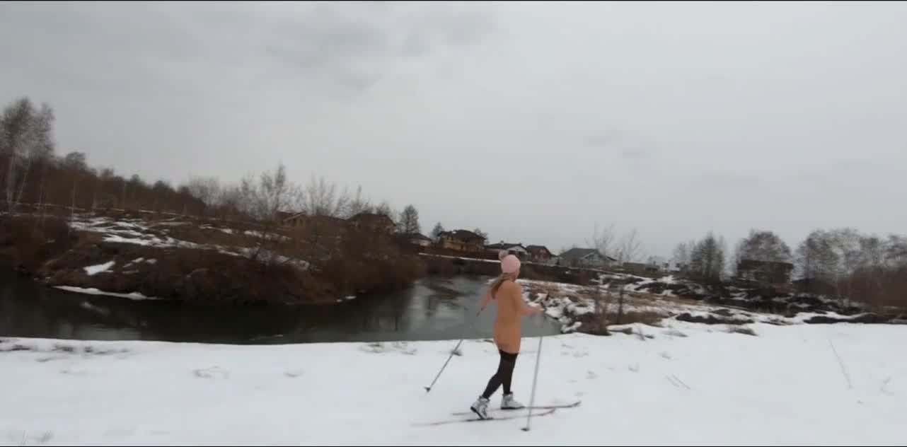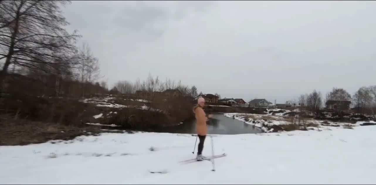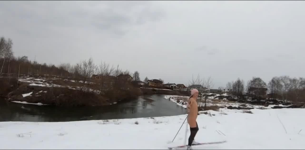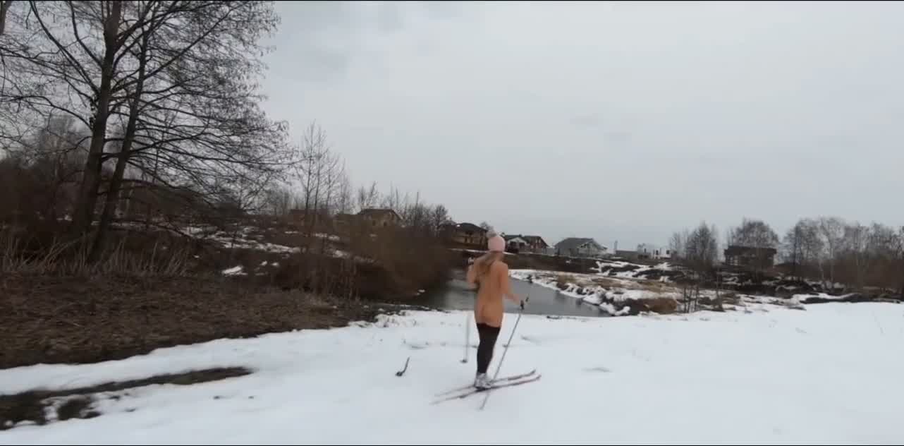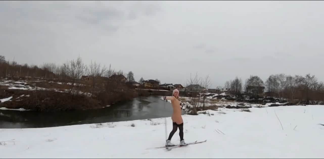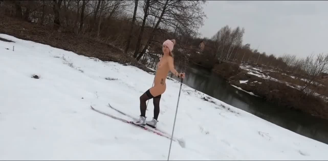 Девчуля катается на лыжах в самом эротическом лыжном костюме