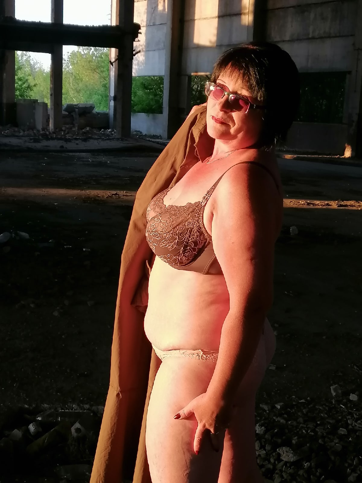 Фотосессия зрелой пышки в заброшенном производственном здании. Простор для прогулок и ваших фантазий
