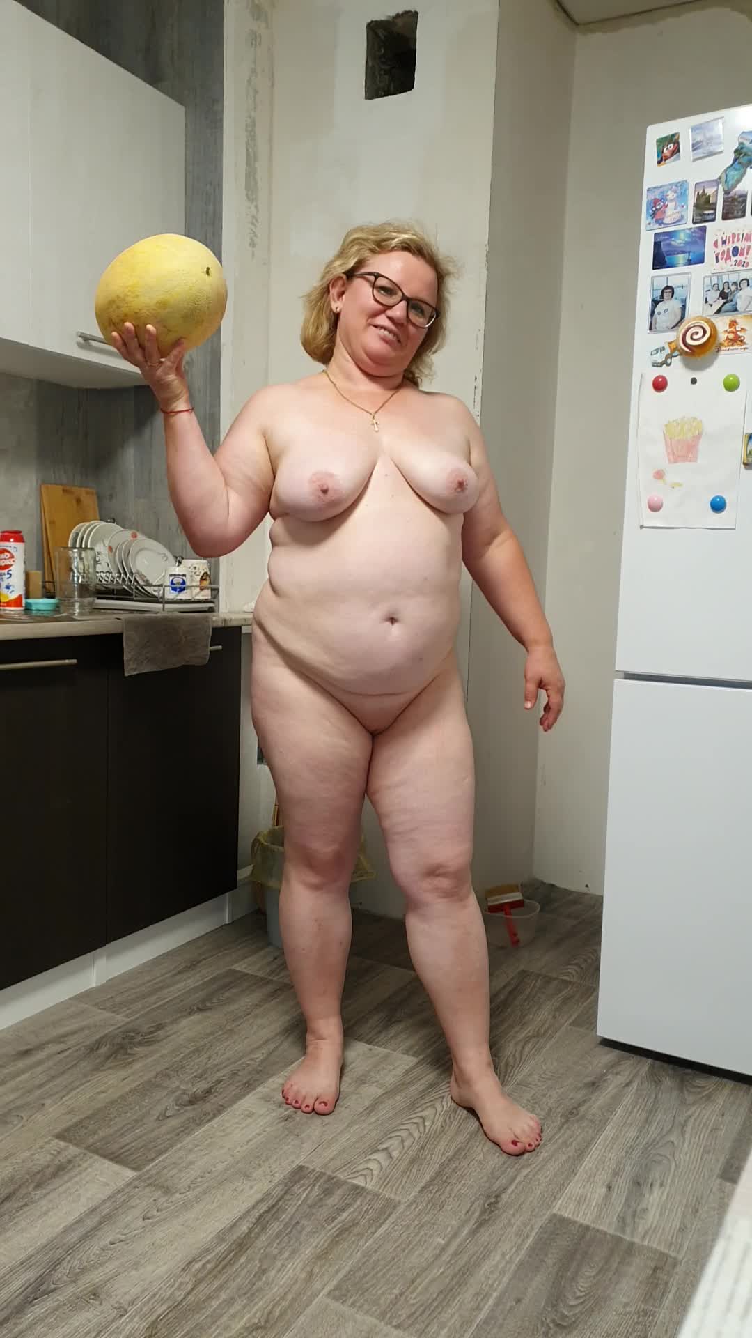 Зрелая дамочка по имени Оля прикупила дыню, а заодно и свои дыньки засветила