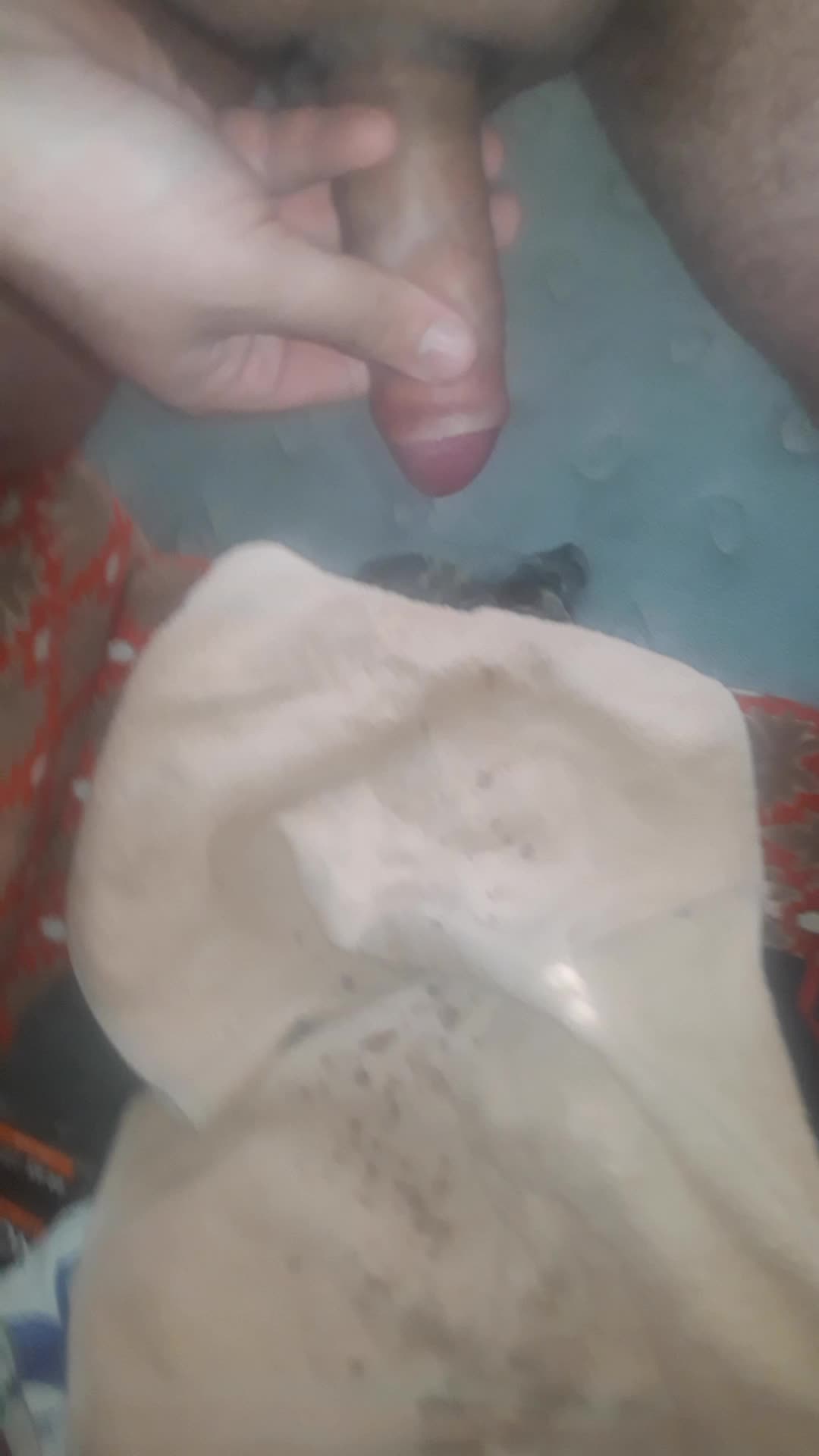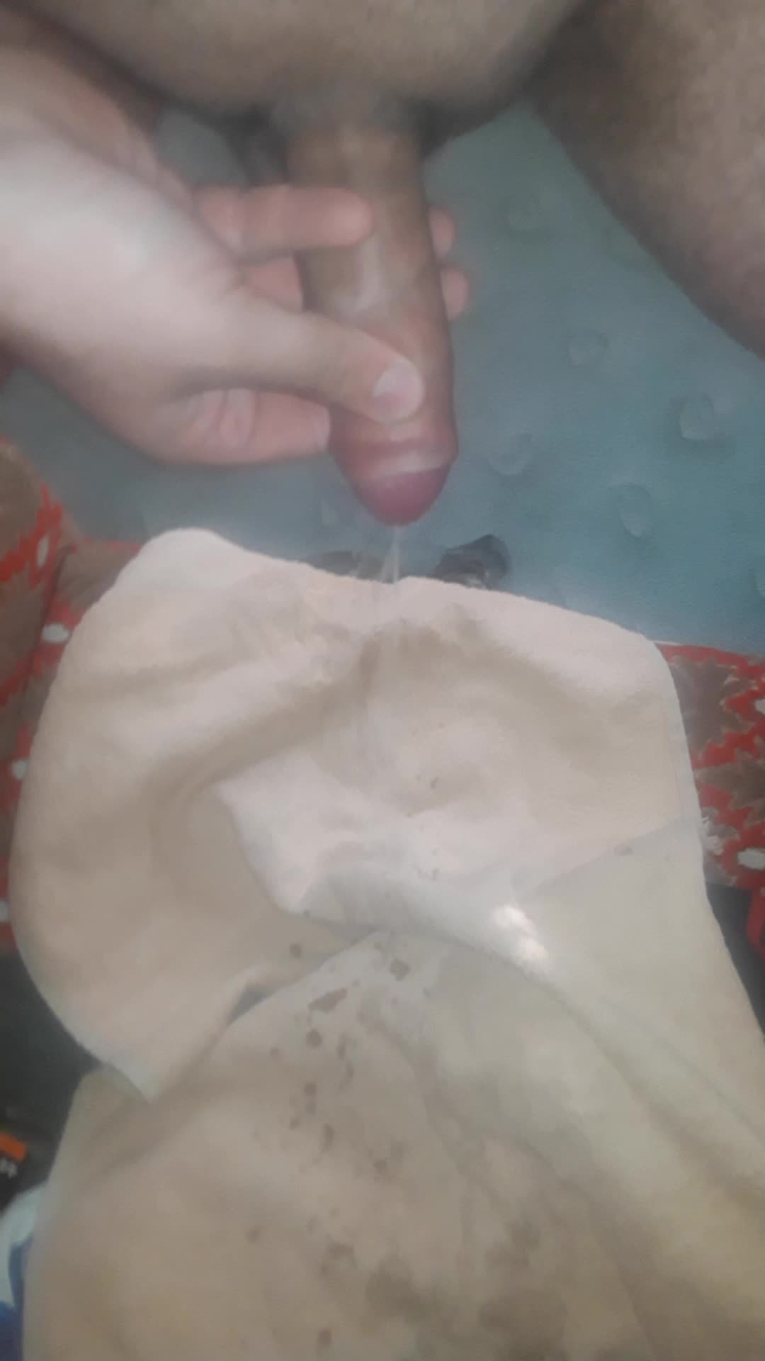 Сливаю сперму на полотенце.