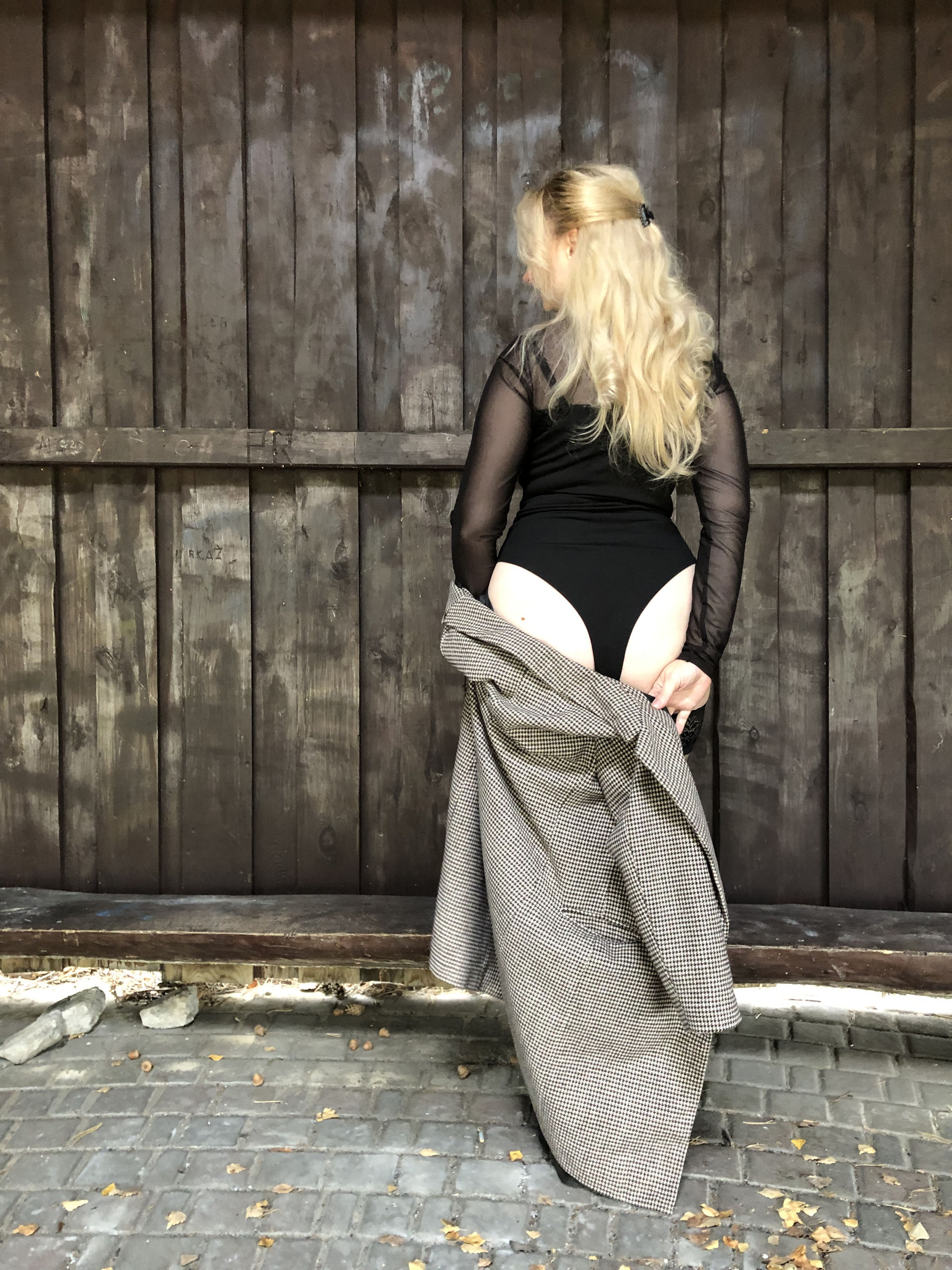 Хороша попка у женщины. У забора хорошие фото получились