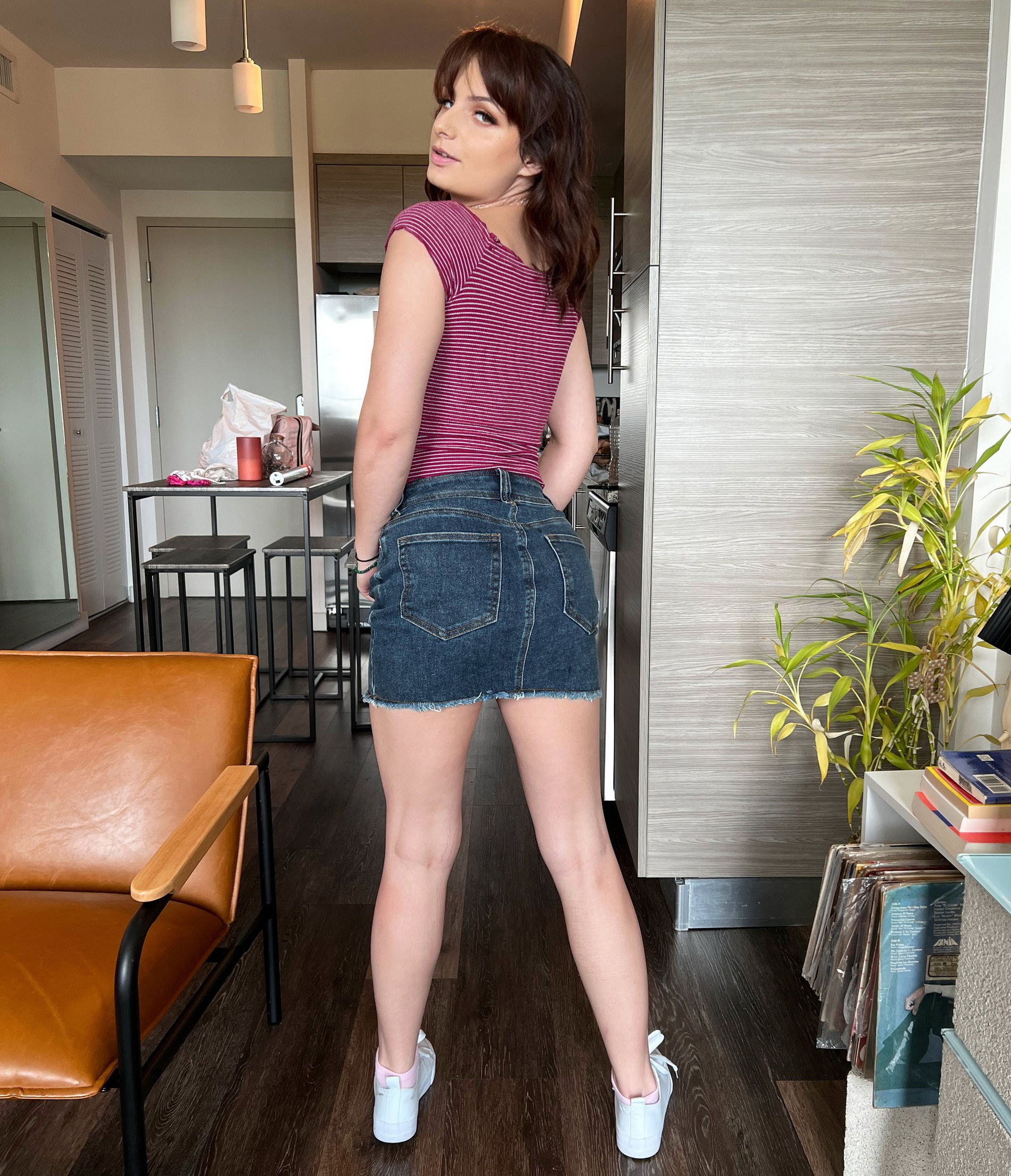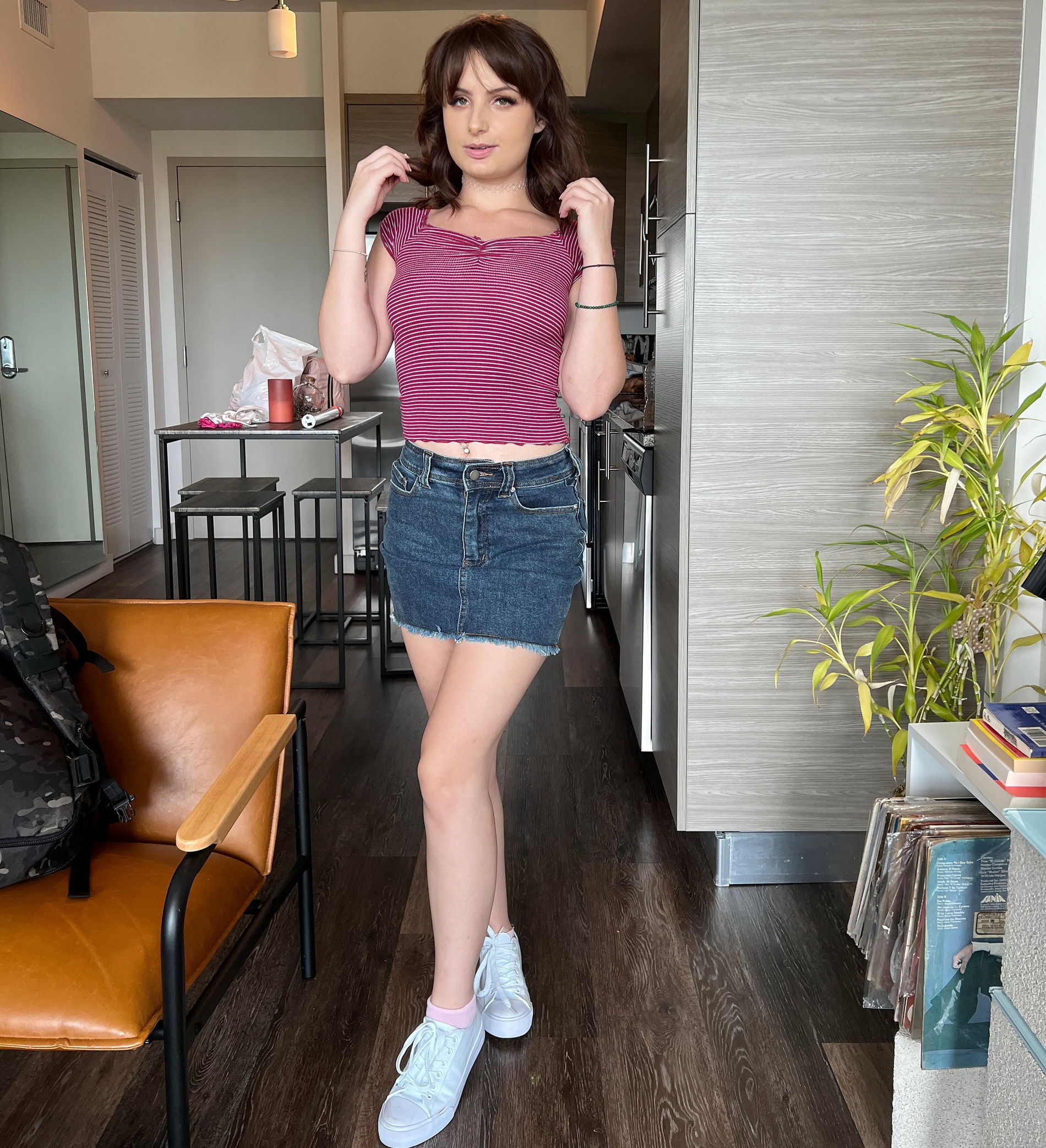 Чувствуется свободно перед камерой себя, эта шатенка чувствует.