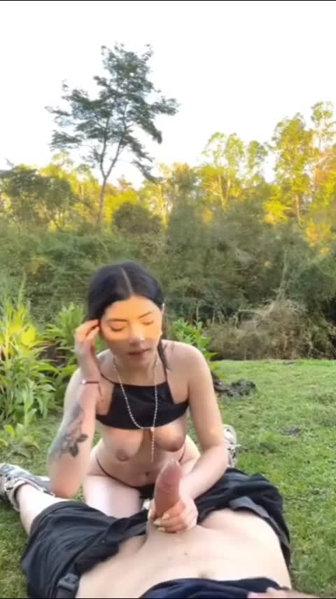 Отличный секс на природе. Правда спустить пришлось себе на живот