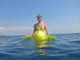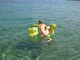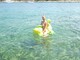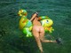 Сергей фотографирует жену на речке с надувным дракончиком.