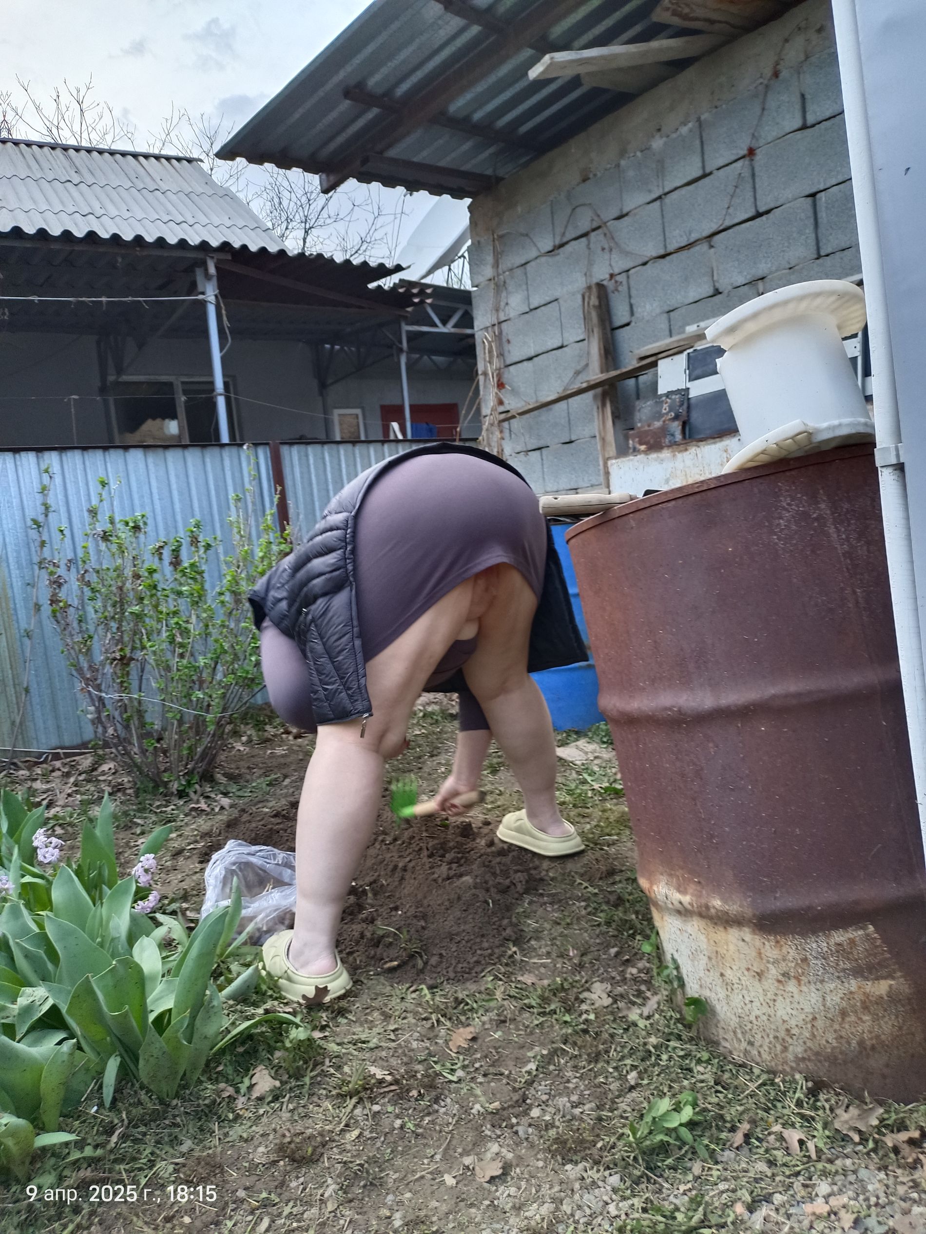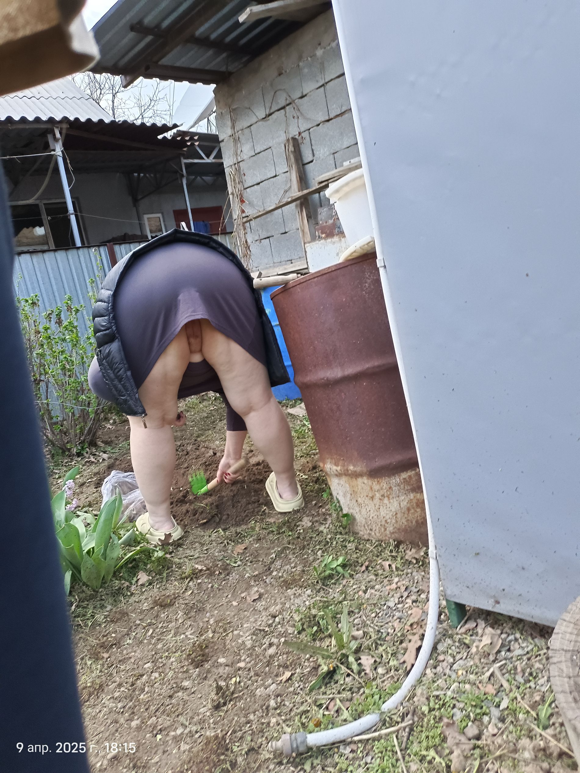 Я однажды тёщу вот так на огороде имел счастье лицезреть) Хуй просто каменный был, еле сдержался...