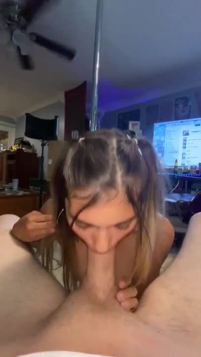 Молодая стройная и красивая девушка сверху прыгает своей бритой киской на члене и делает минет!