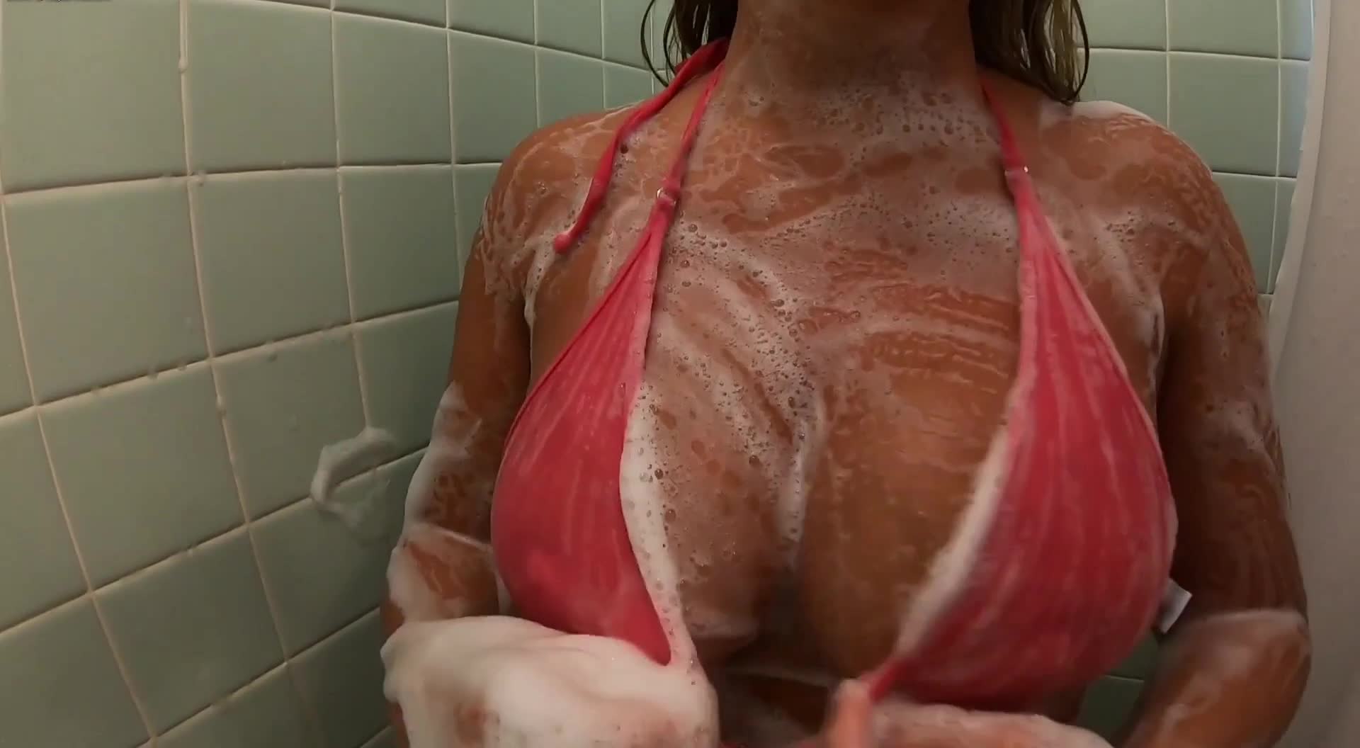 Мужчина снимает как его зрелая жена намывается в душе, та с удовольствием позирует