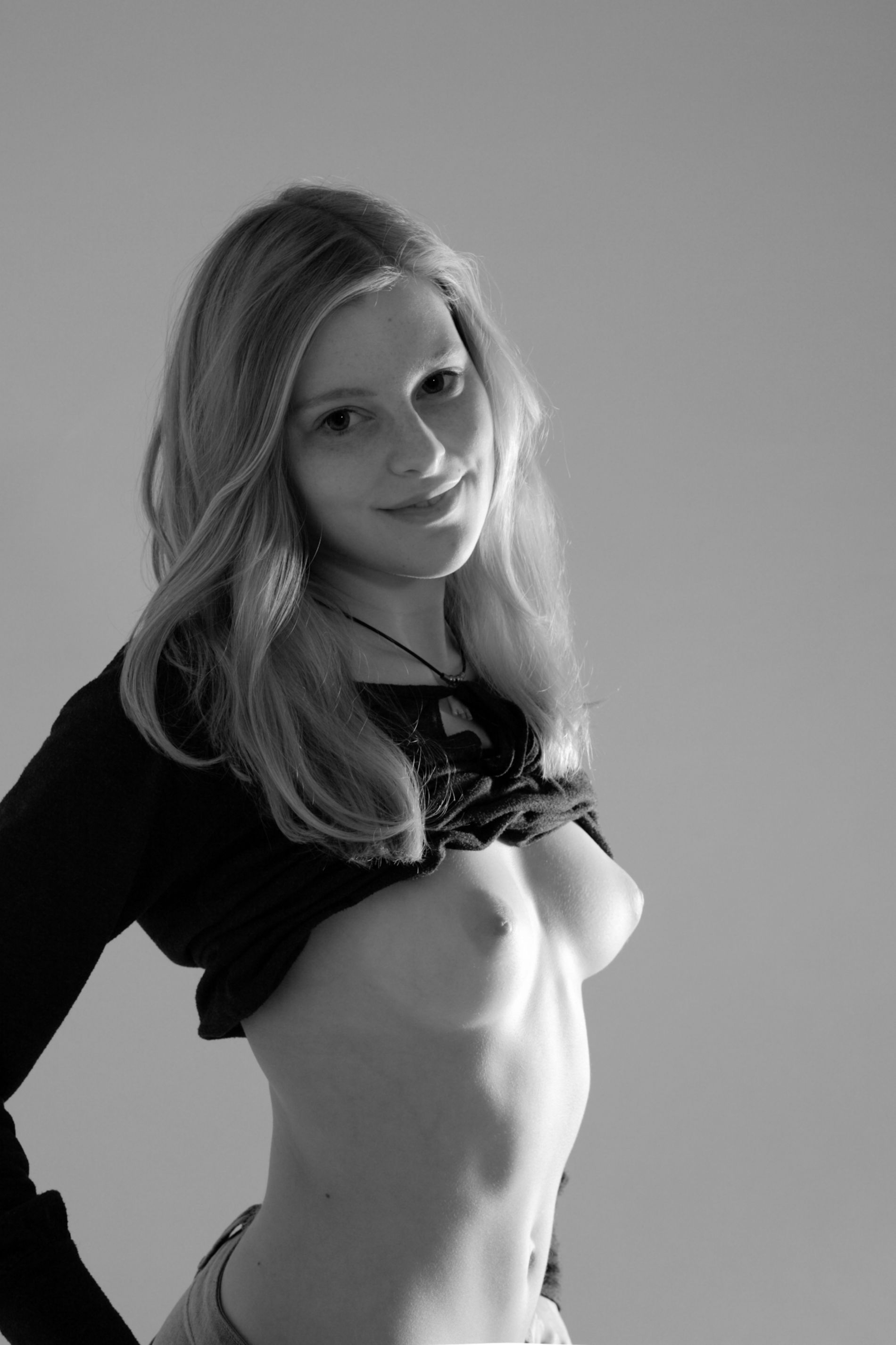 Интригующая и скромная блондинка со вкусом демонстрирует свою наготу.