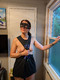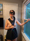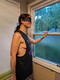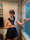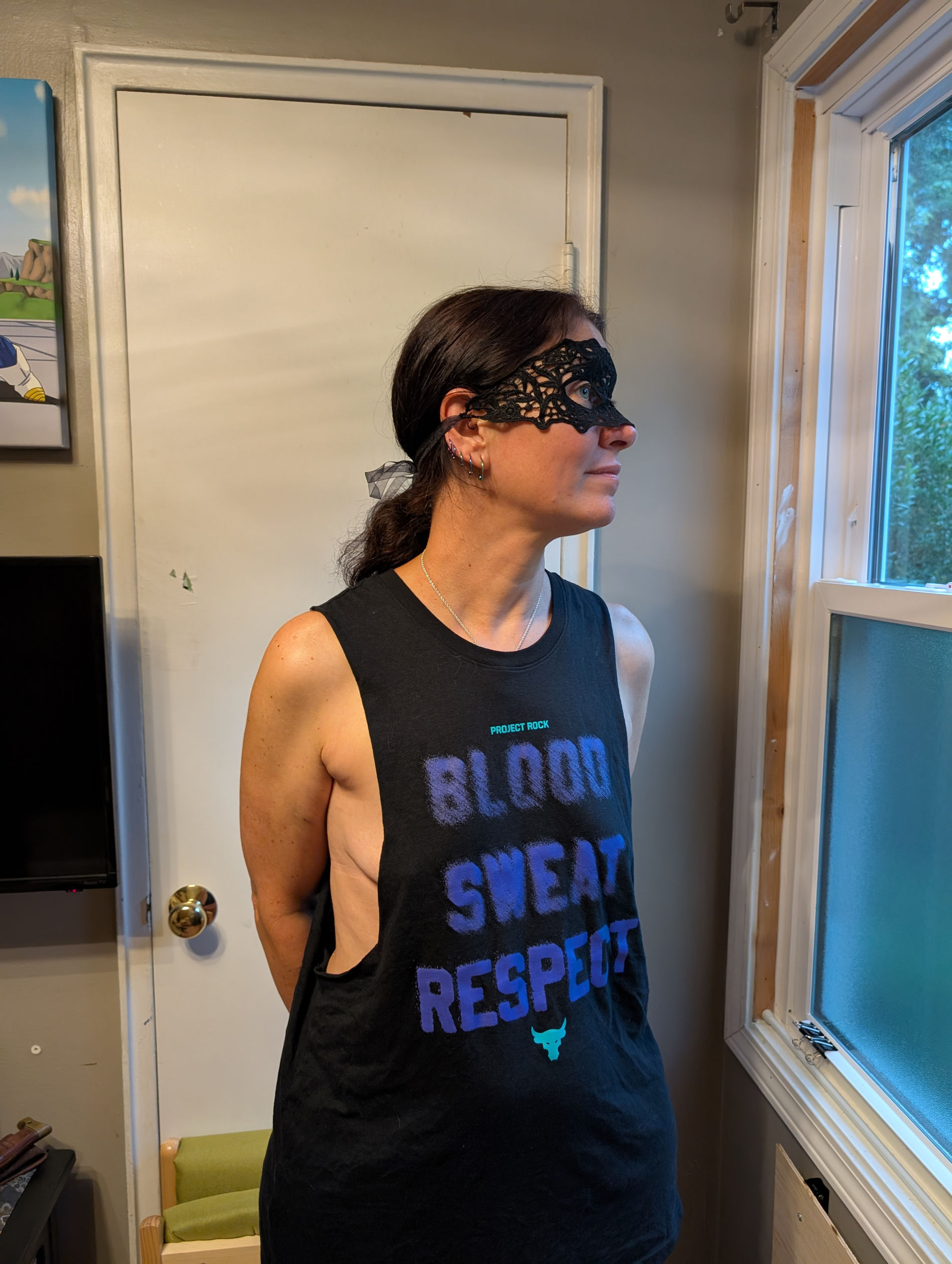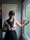 В маске возле окна