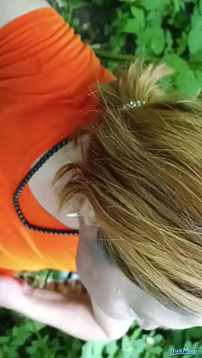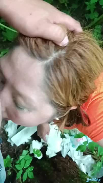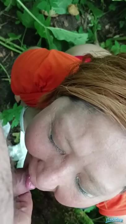 Рыжая зрелая женщина сосет член мужику в кустах до финала!