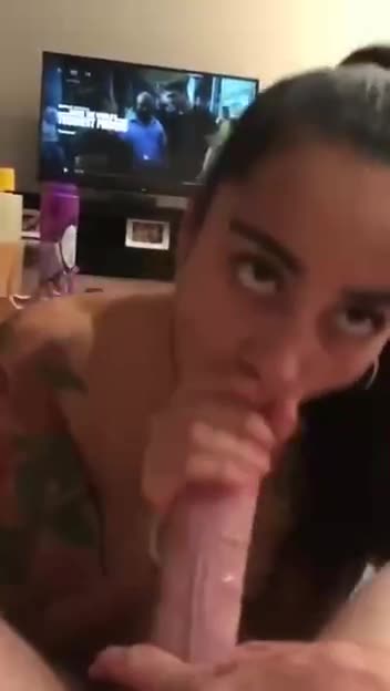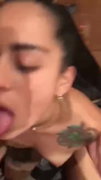 Девушка сочно сосёт огромный белый член и получает сперму на лицо