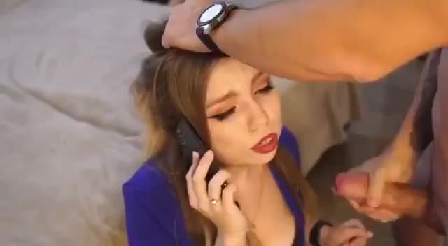 Девушка разговаривает со своим парнем по телефону в то время, когда любовник её имеет как шлюху