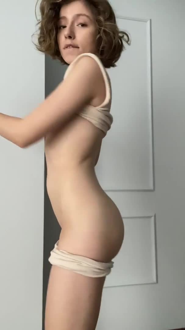 девка снимает шортики и топик