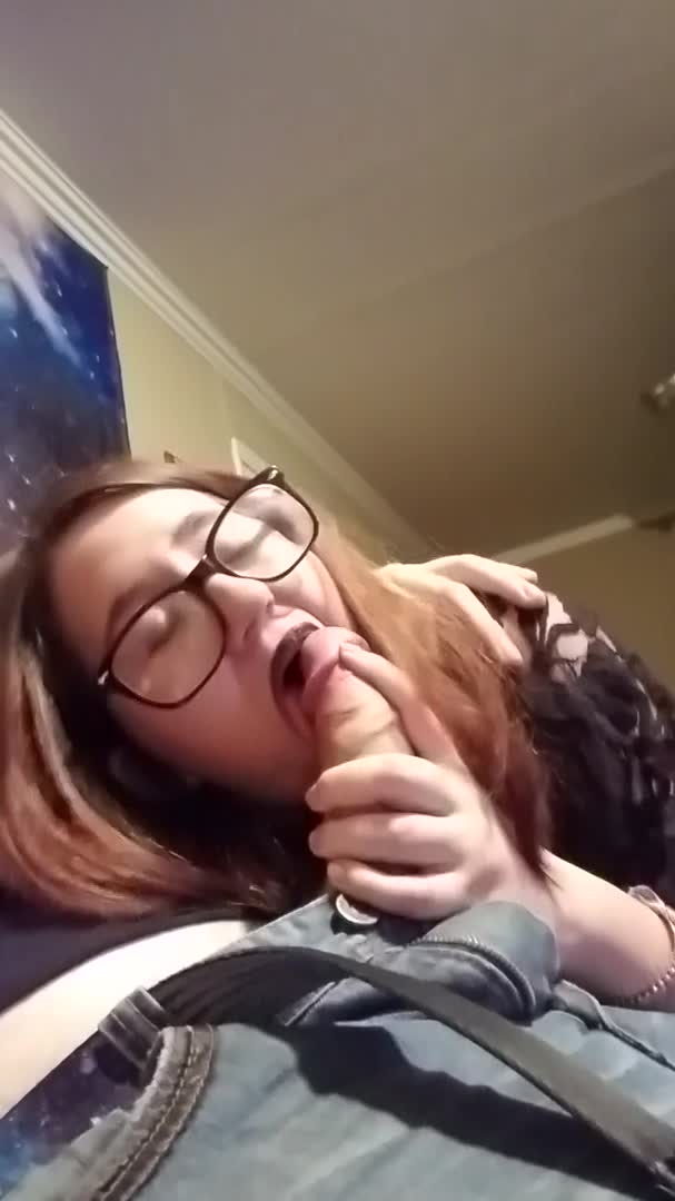 Девушка в очках осторожно сосет член своего друга