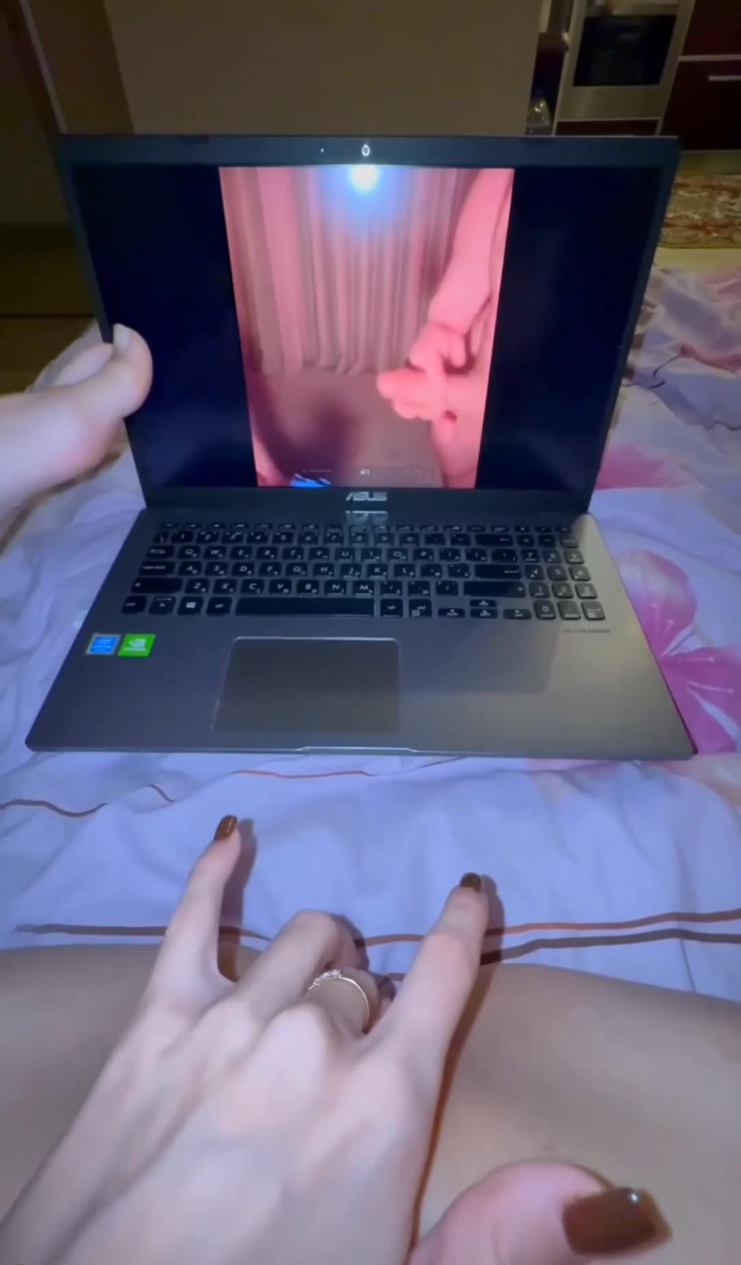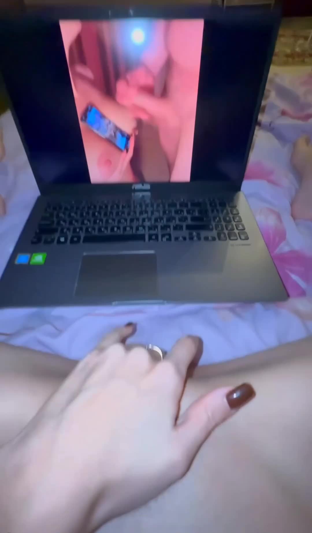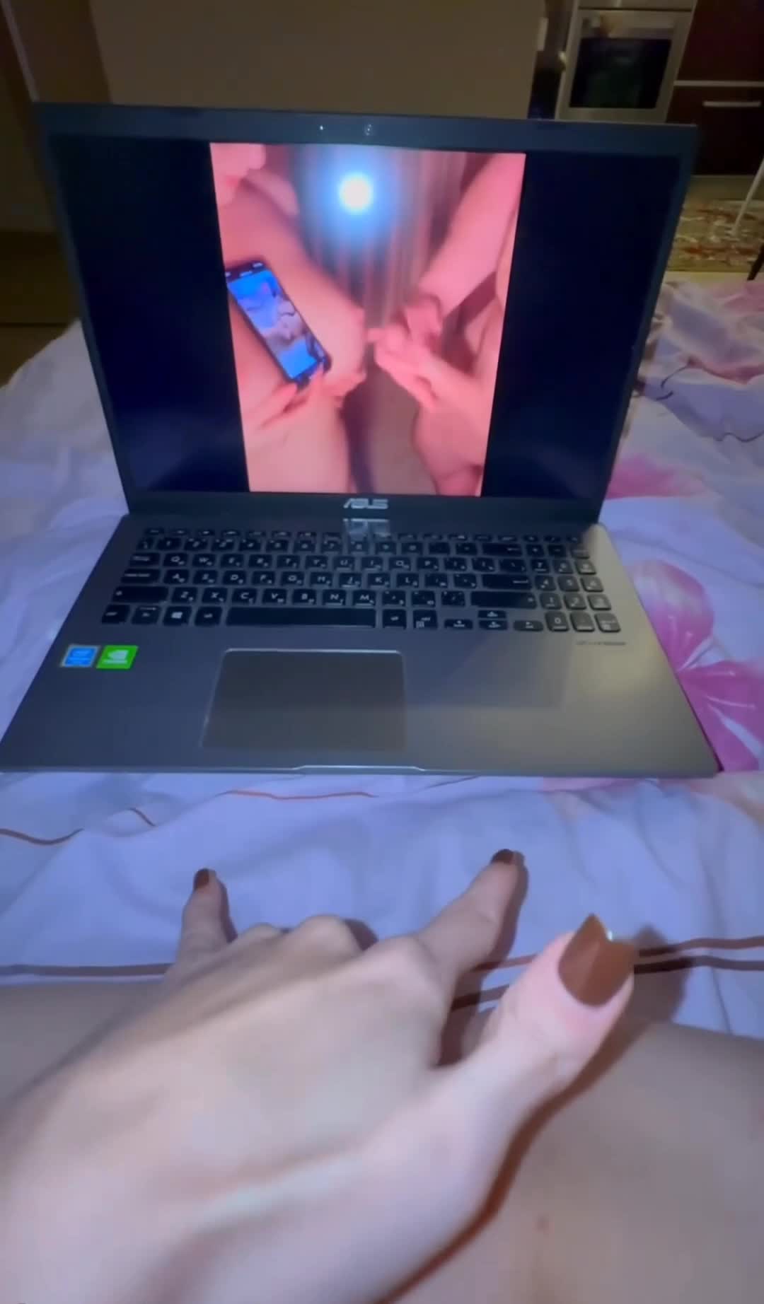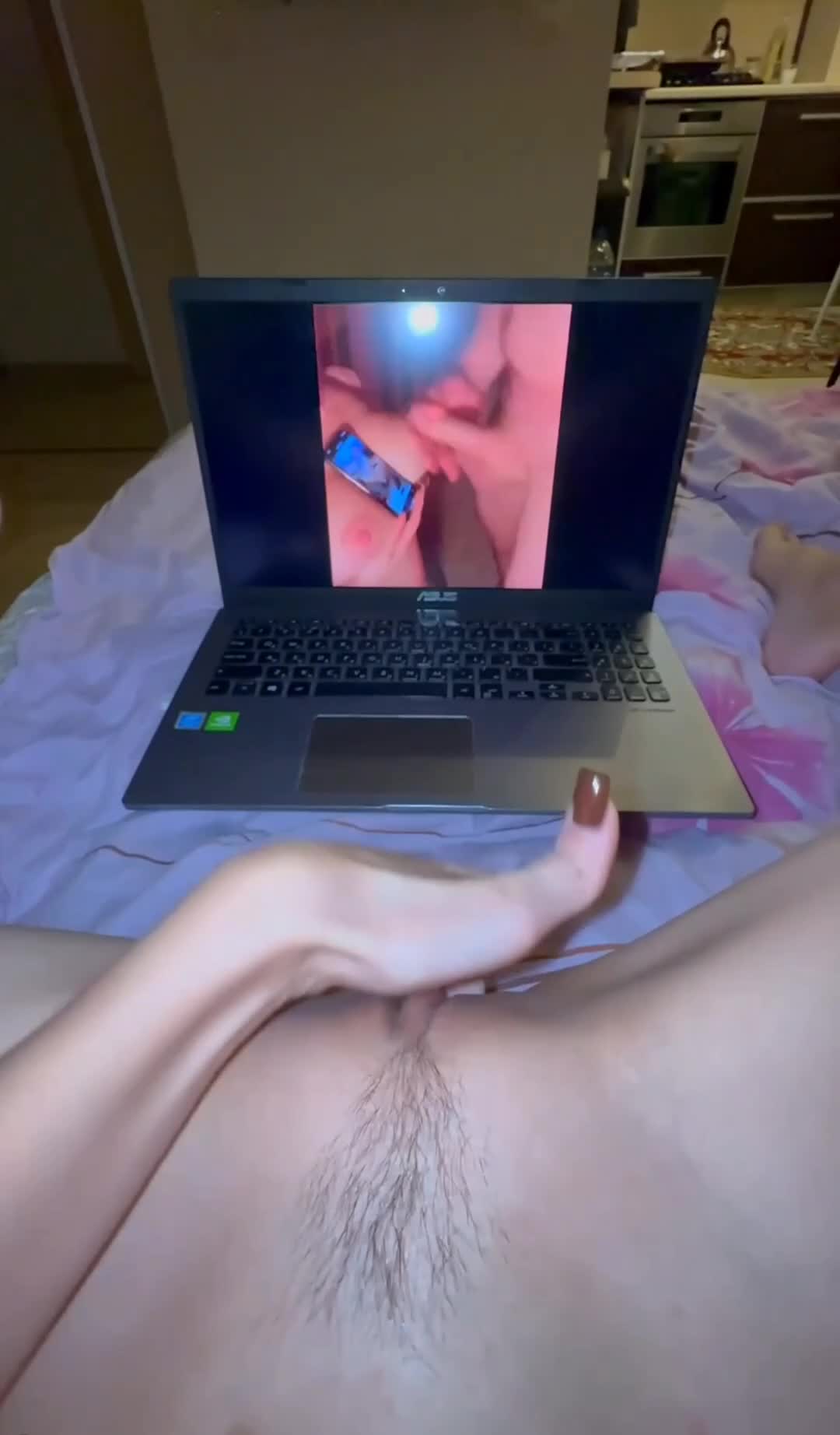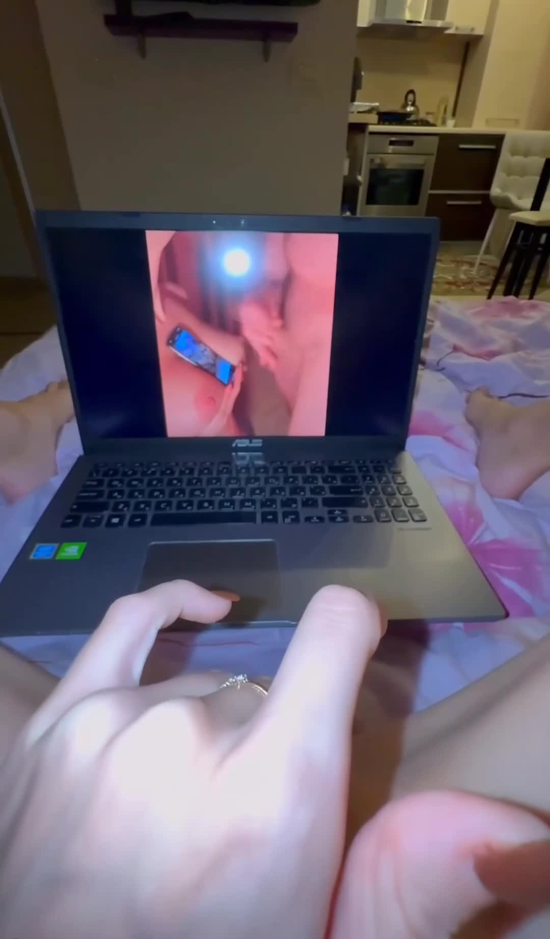 Не много не понял происходящего на видео с ноута.Чудаку телка дополнительно на телефоне порнушку ставит, чтоб он ей на сиськи кончил?мир совсем ебнулся...