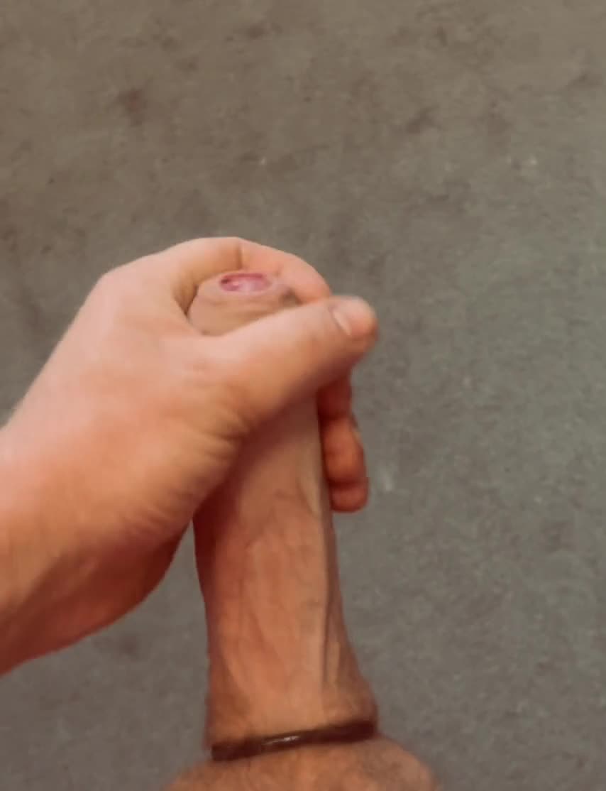 Надрачиваю член с кольцом и далеко брызгаю спермой
