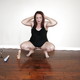 Снимает майку и позирует голая на полу