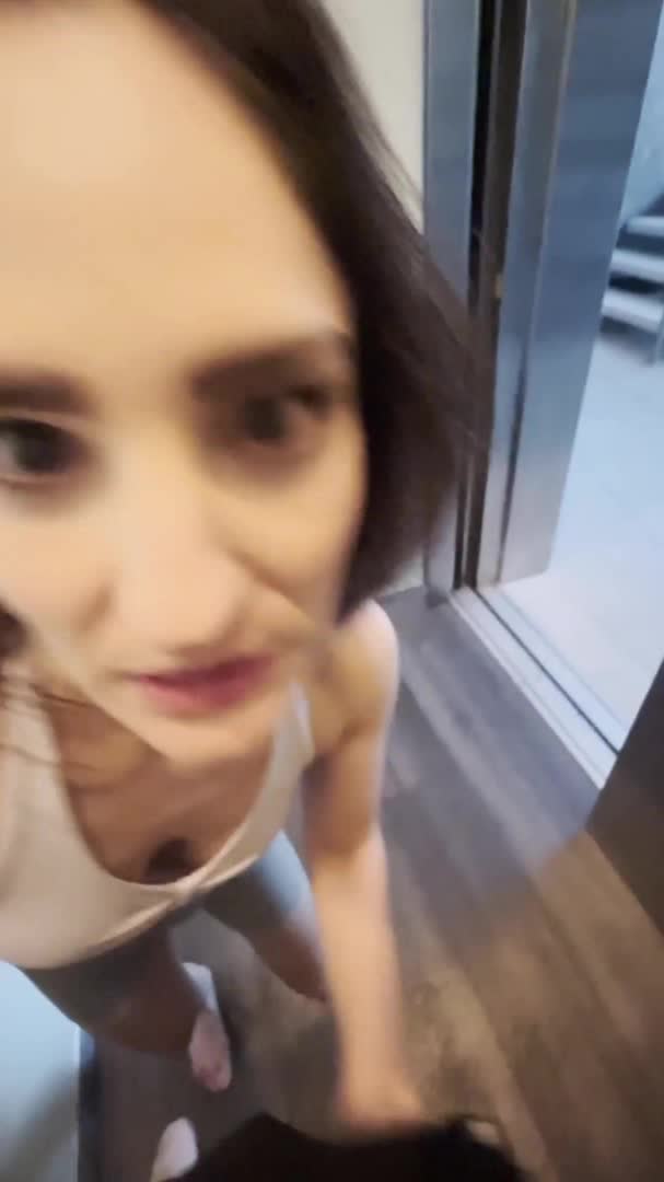 Шлюшка делает минет своему другу, но он не успел кончить до того, как в лифт зашёл незнакомый парень.