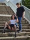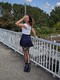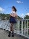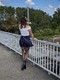 интимная фото сессия девушки в чёрных чулках и юбке, где то в городе во время прогулки