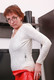 Мохнатая София позирует в красной юбке и в белой водолазке возле телевизора!