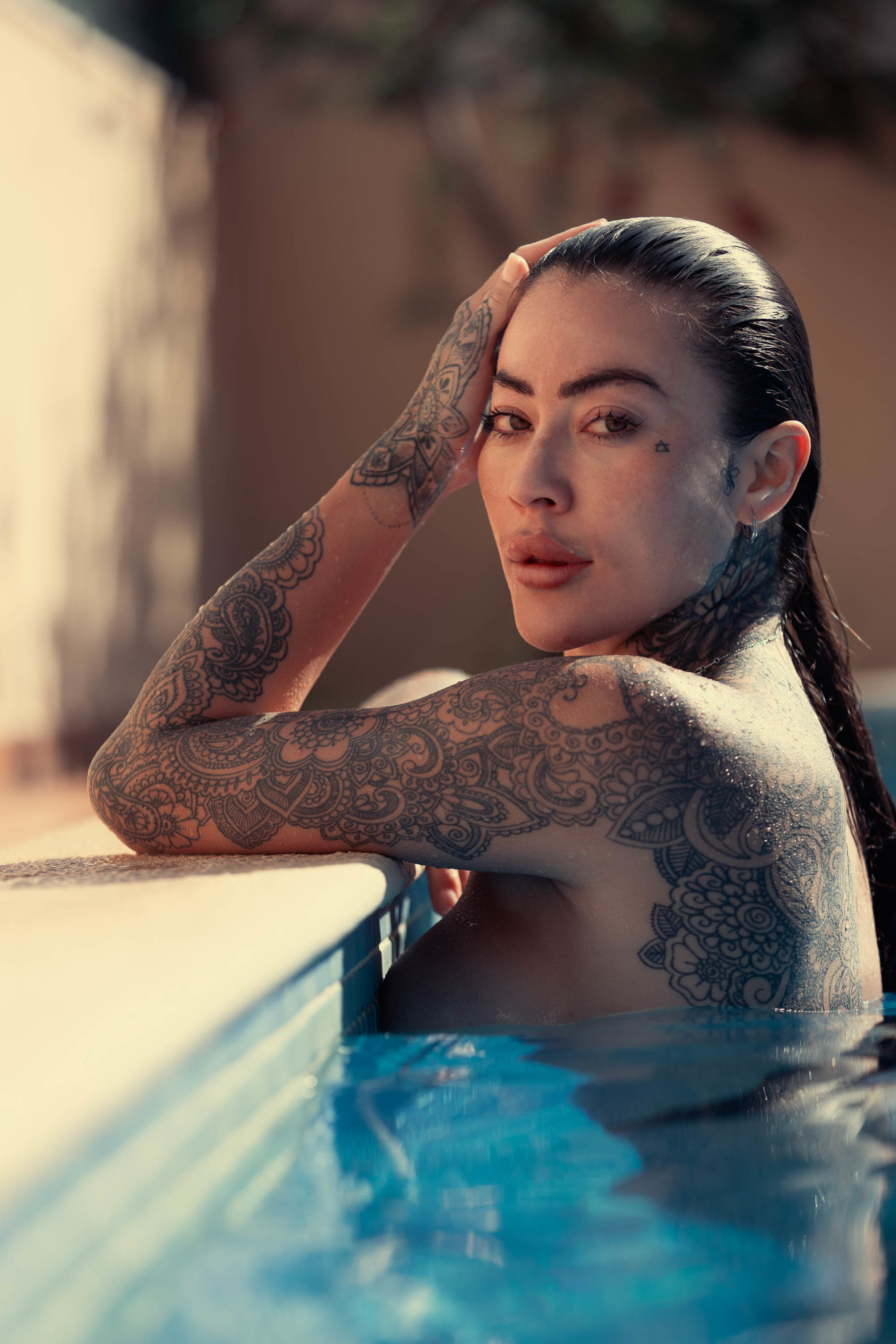 очень красивая. грудь качественно сделала. но тату все же очень много